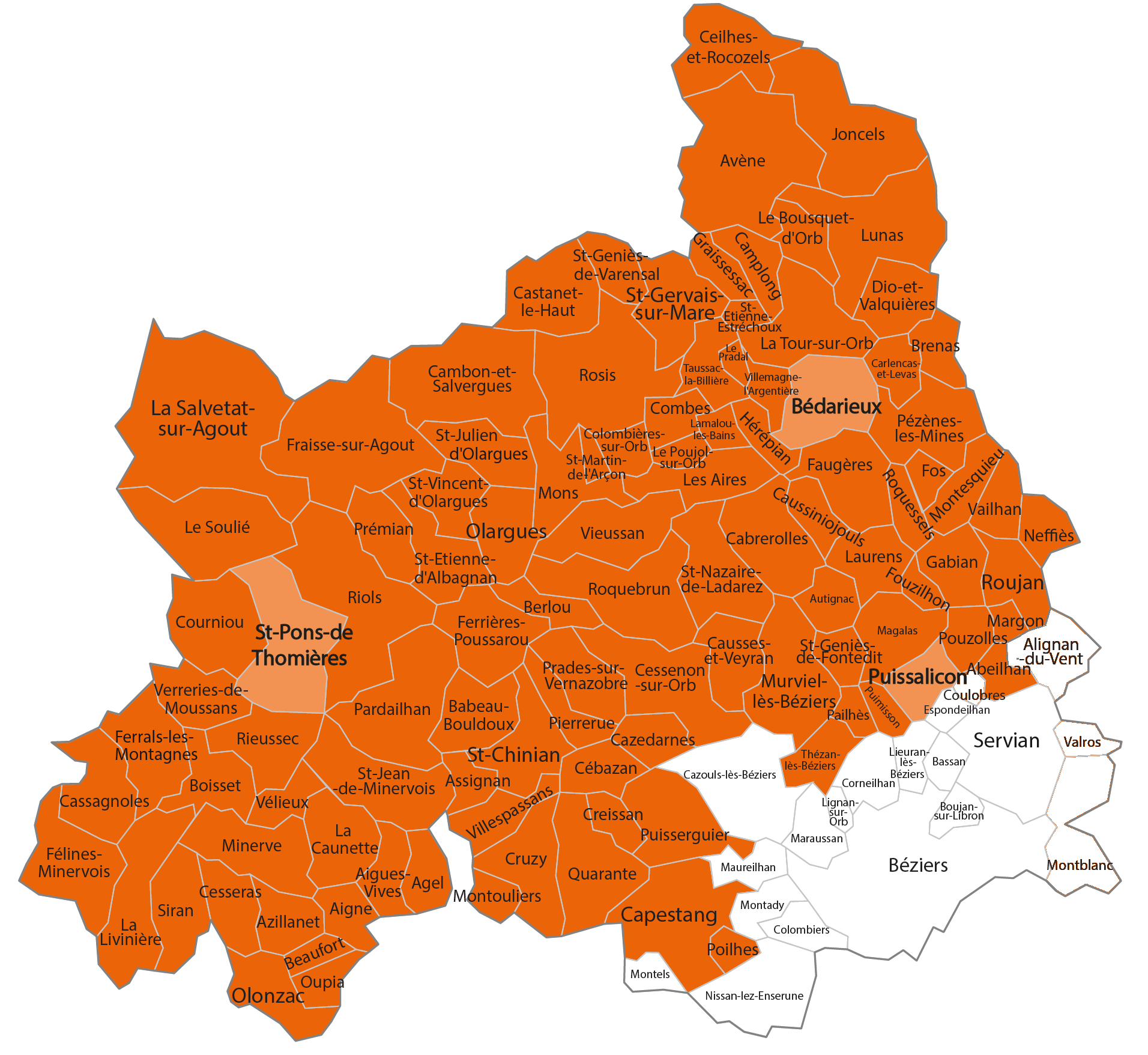 Carte du Territoire du PLIE Haut Languedoc & Vignobles